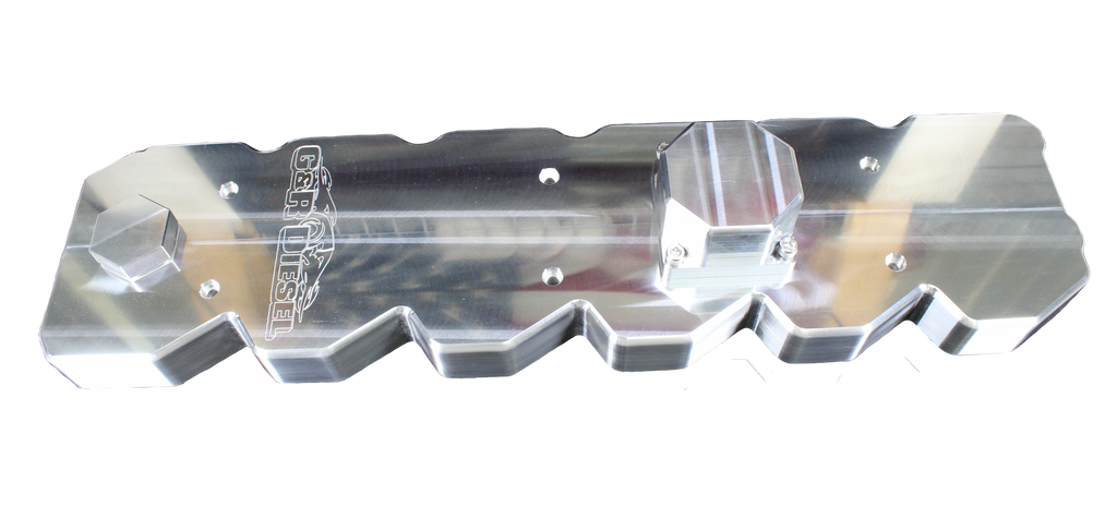 If you are looking to dress up your 2003-2005 5.9 Cummins this is the first piece of the puzzle! Remove the cheap plastic valve cover / CCV filter and replace it with this sweet billet aluminum piece. It includes a billet oil fill cap and baffled CCV canister with AN type fittings. If you would like our braided stainless vent line kit, it is sold separately, Part # GRD00170. By removing the factory CCV filter you no longer need to purchase expensive filters when they get plugged and it also keeps crankcase pressures in check at high RPMs. All parts including the oil fill cap are manufactured from solid 6061 T6 billet aluminum. Valve cover includes all stainless hardware and sealing surfaces are sealed with O-ring seals. The cover comes with a machined finish and is available polished. THIS COVER WILL ONLY WORK WITH 2003-2005 5.9 CUMMINS. ALL 2006-2007.5 CUMMINS USE THE SAME COVER AS A 6.7 CUMMINS Key Features: - ALL 2006-2007.5 CUMMINS USE THE SAME COVER AS A 6.7 CUMMINS GRD59CM3005 Compatible with: 03-05 5.9 Cummins Billet Aluminum Valve Cover, Cummins, Engine & Engine Parts